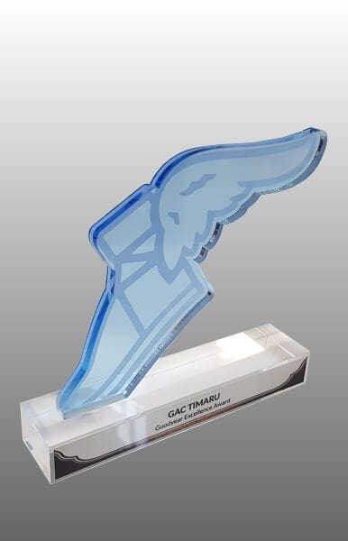 Examples include making a logo badge to attach to the face of an award. Adding colour or colouring a whole award to match company branding. Taking a premade item that a company produces and mounting this on a plinth with a winner’s plate.